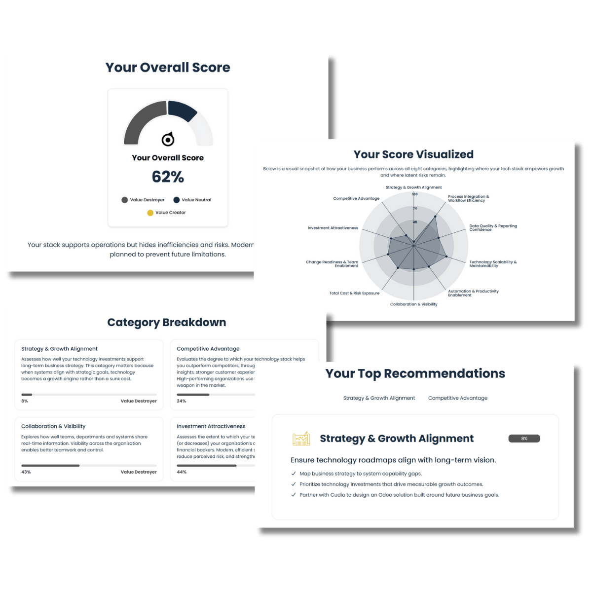 Step 2. Instantly receive your Tech Stack Value Scorecard showing where you’re strong, and where unseen gaps lurk.
